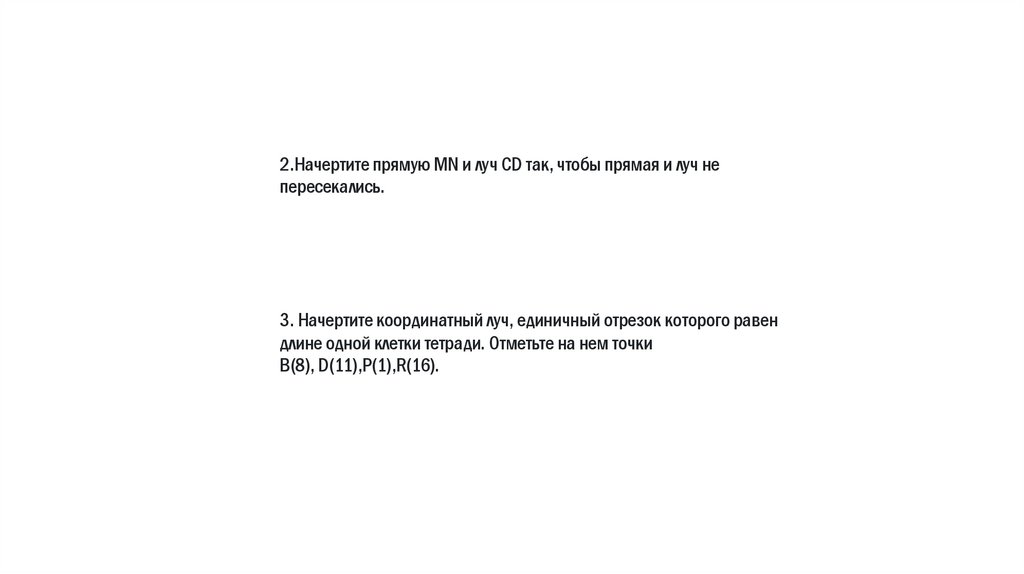 2.Начертите прямую MN и луч CD так, чтобы прямая и луч непересекались.