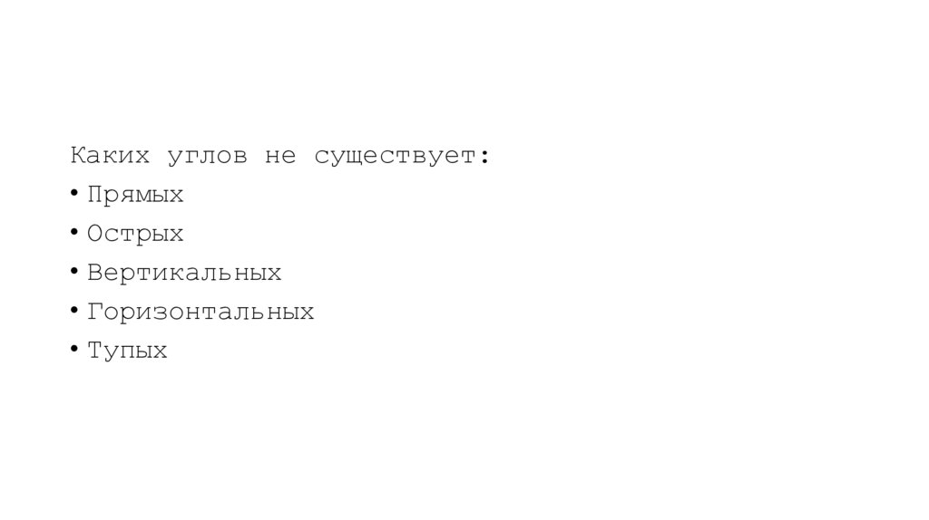 Каких углов не существует:• Прямых
