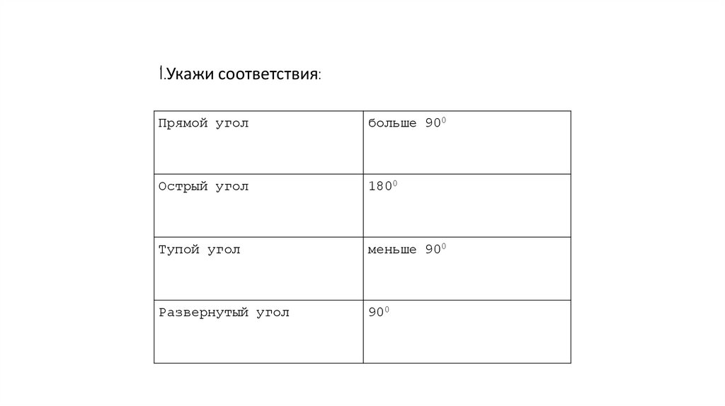 1.Укажи соответствия:Прямой угол