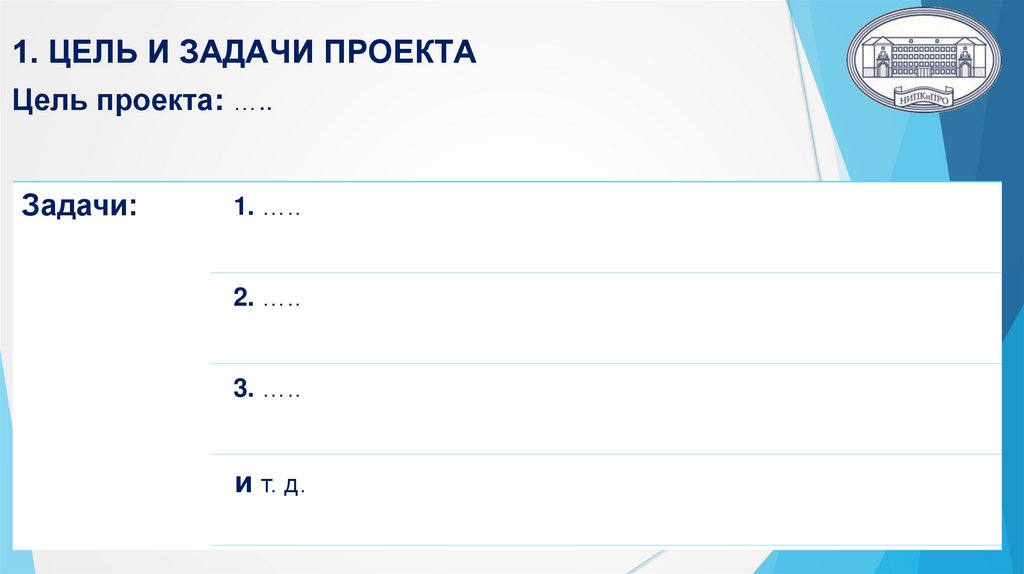 1. ЦЕЛЬ И ЗАДАЧИ ПРОЕКТАЦель проекта: …..