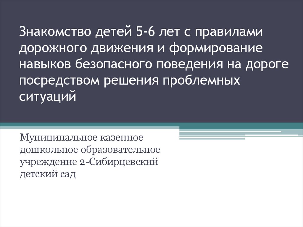 1. Знакомство детей 5-6 лет с правилами дорожного движения и формирование навыков безопасного поведения на дороге посредством