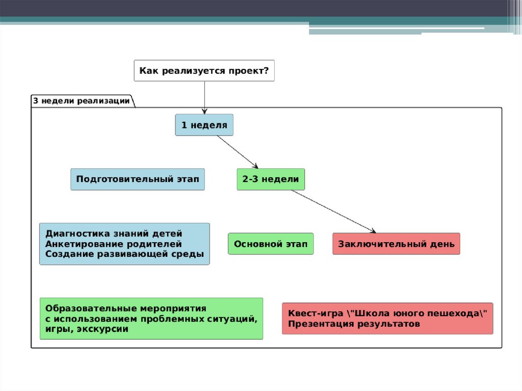 • 3 недели реализации:• 1 неделя - Подготовительный этап: