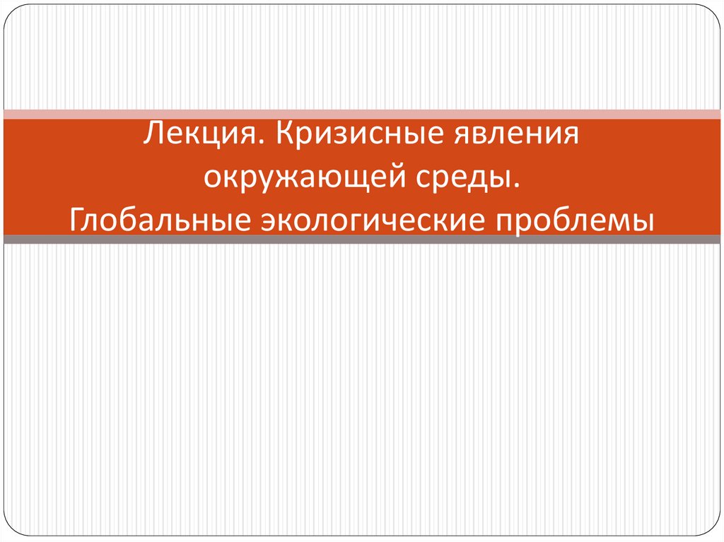 Лекция Кризисные явления. Глобальные экологические проблемы