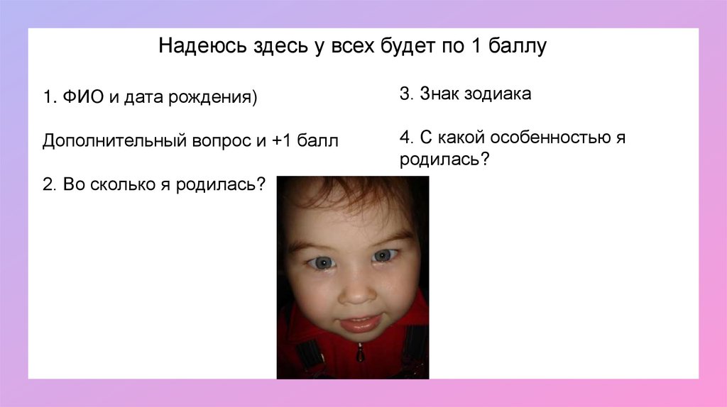 Надеюсь здесь у всех будет по 1 баллу1. ФИО и дата рождения)