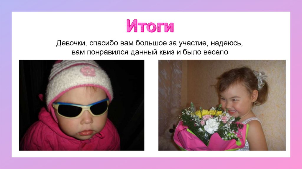 Девочки, спасибо вам большое за участие, надеюсь,вам понравился данный квиз и было весело