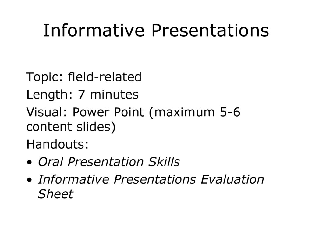 Informative PresentationsTopic: field-related
