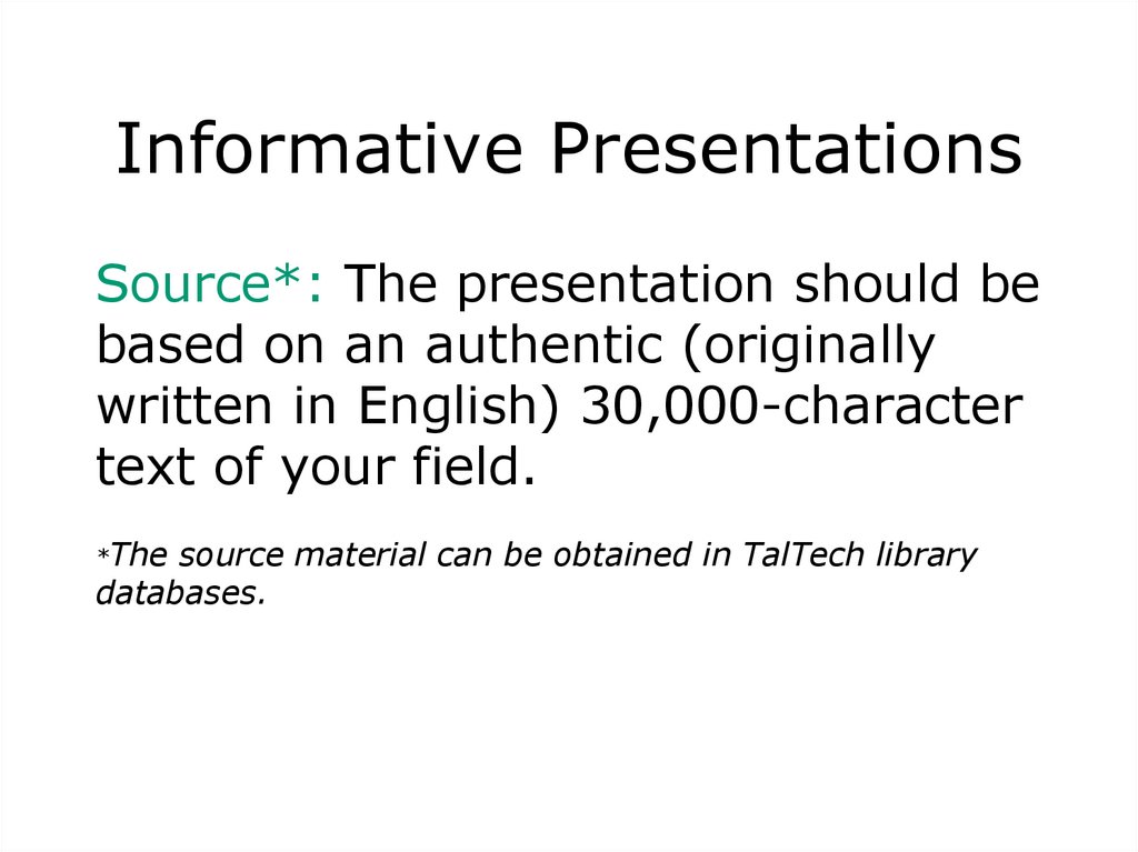 Informative PresentationsSource*: The presentation should be