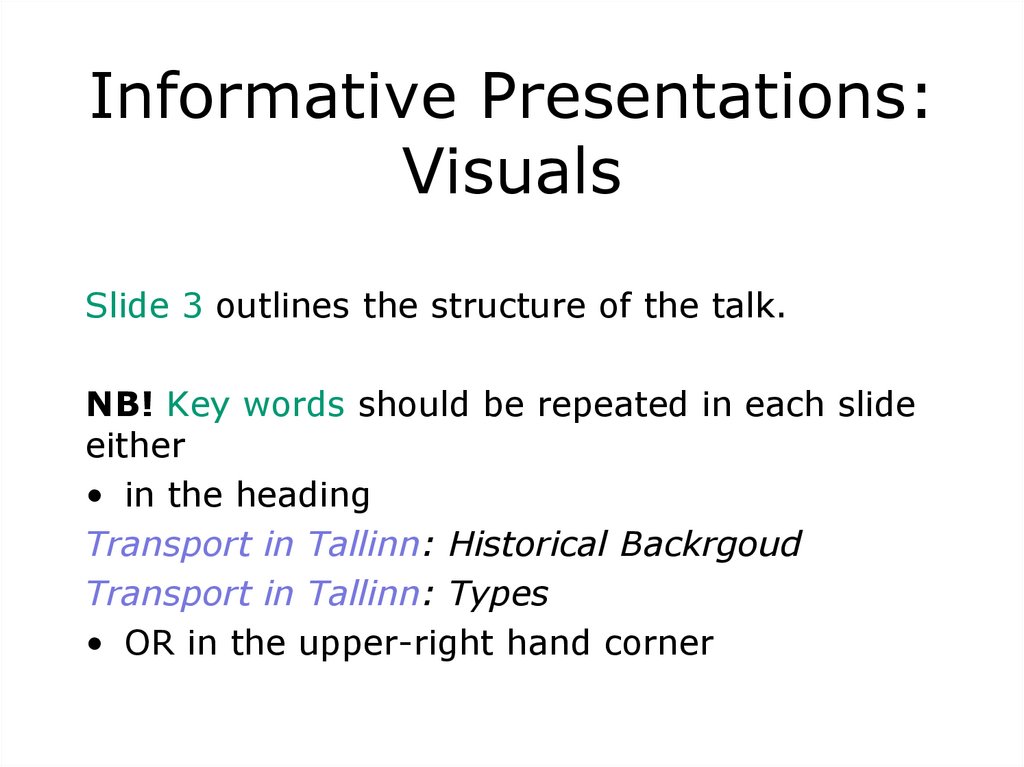 NB! Key words should be repeated in each slide