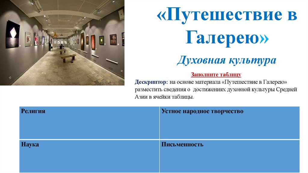 Дескриптор: на основе материала «Путешествие в Галерею»