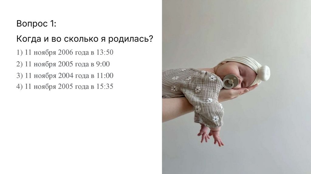 Вопрос 1:Когда и во сколько я родилась?