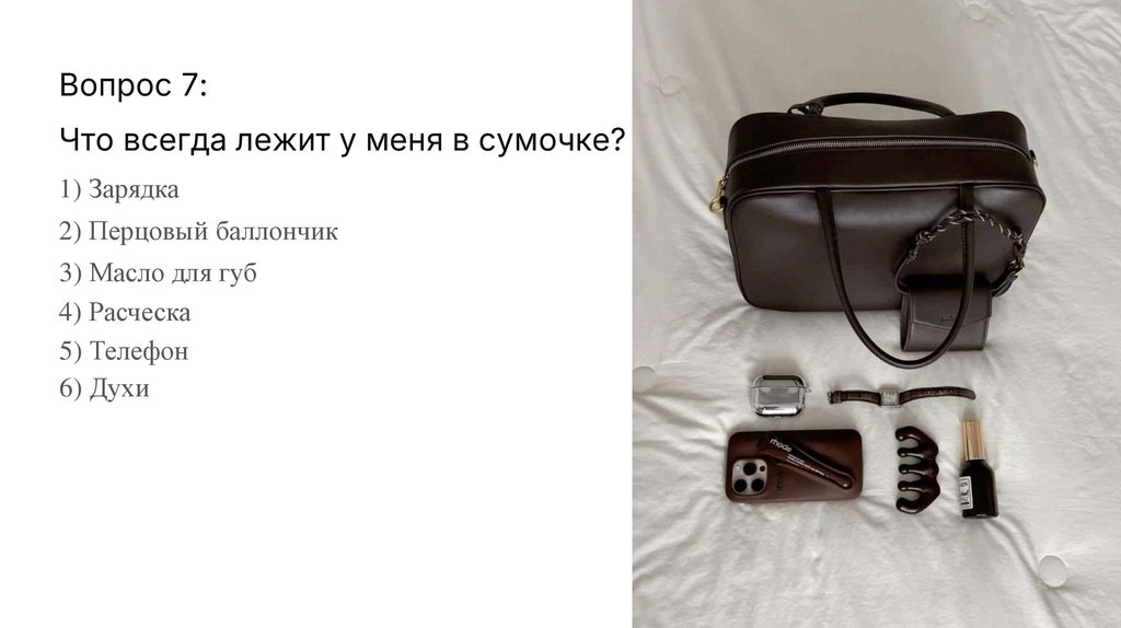 Вопрос 7:Что всегда лежит у меня в сумочке?