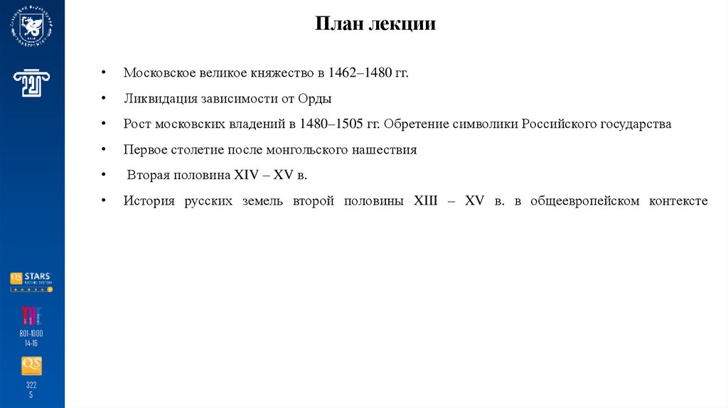 План лекцииМосковское великое княжество в 1462–1480 гг.