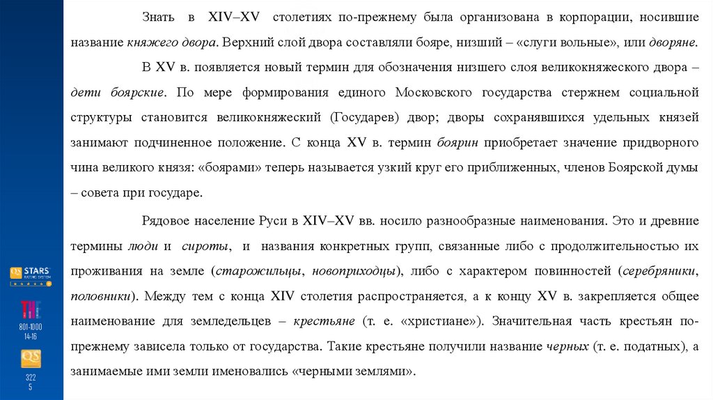 занимают подчиненное положение. С конца XV в. термин боярин приобретает значение придворного