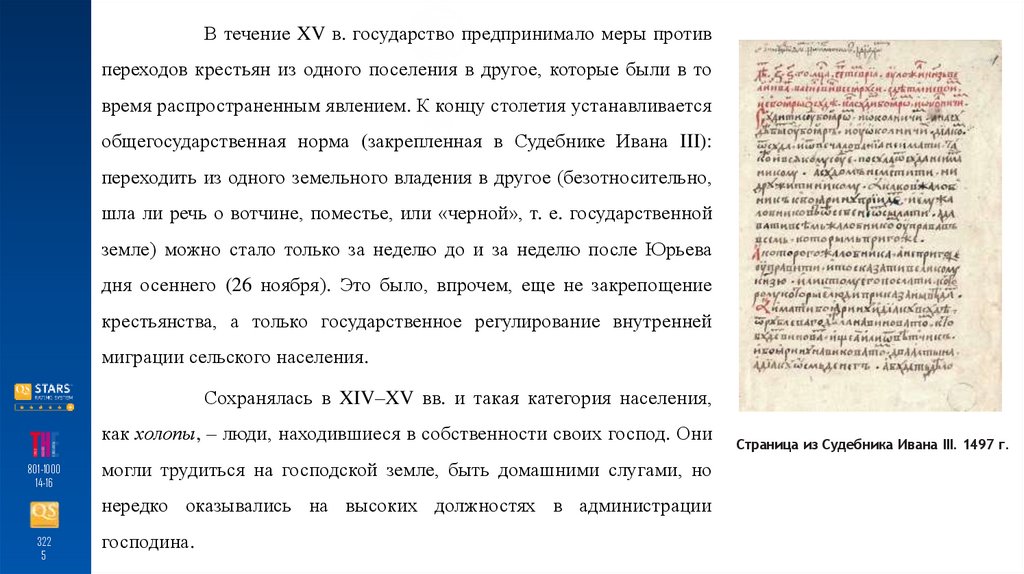 В течение XV в. государство предпринимало меры противпереходов крестьян из одного поселения в другое, которые были в то