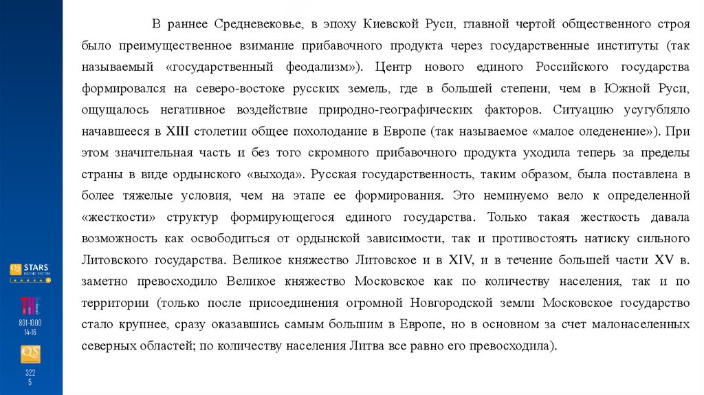 В раннее Средневековье, в эпоху Киевской Руси, главной чертой общественного строябыло преимущественное взимание прибавочного продукта через государственные институты (так