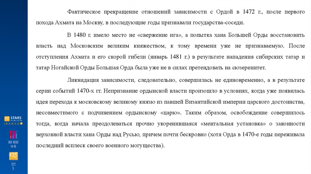 верховной власти хана Орды над Русью, причем почти бескровно (хотя Орда в 1470-е годы переживала