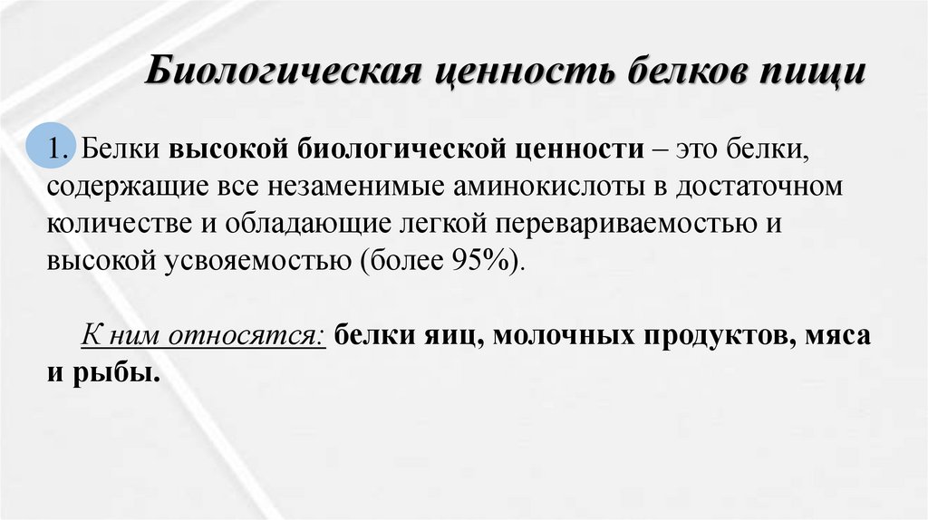 Биологическая ценность белков пищи1. Белки высокой биологической ценности – это белки,