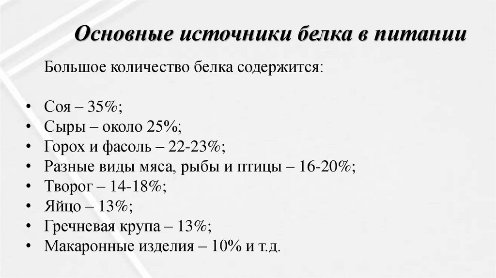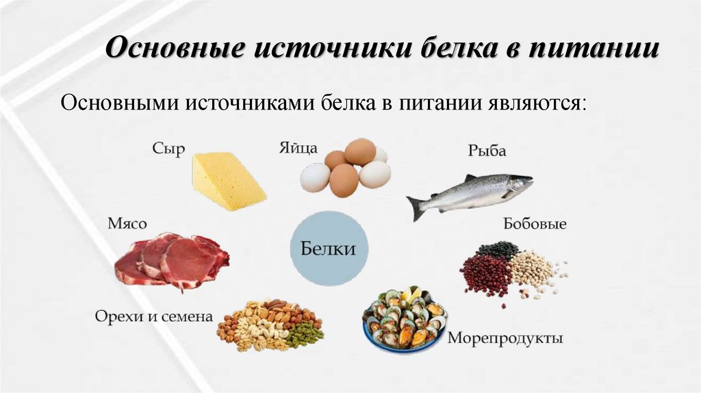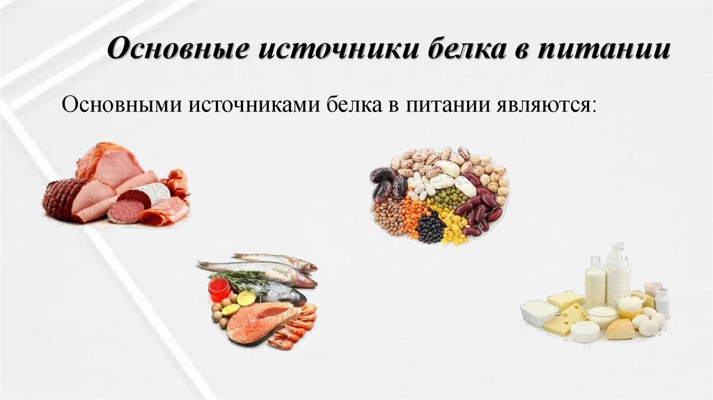 Основные источники белка в питанииОсновными источниками белка в питании являются: