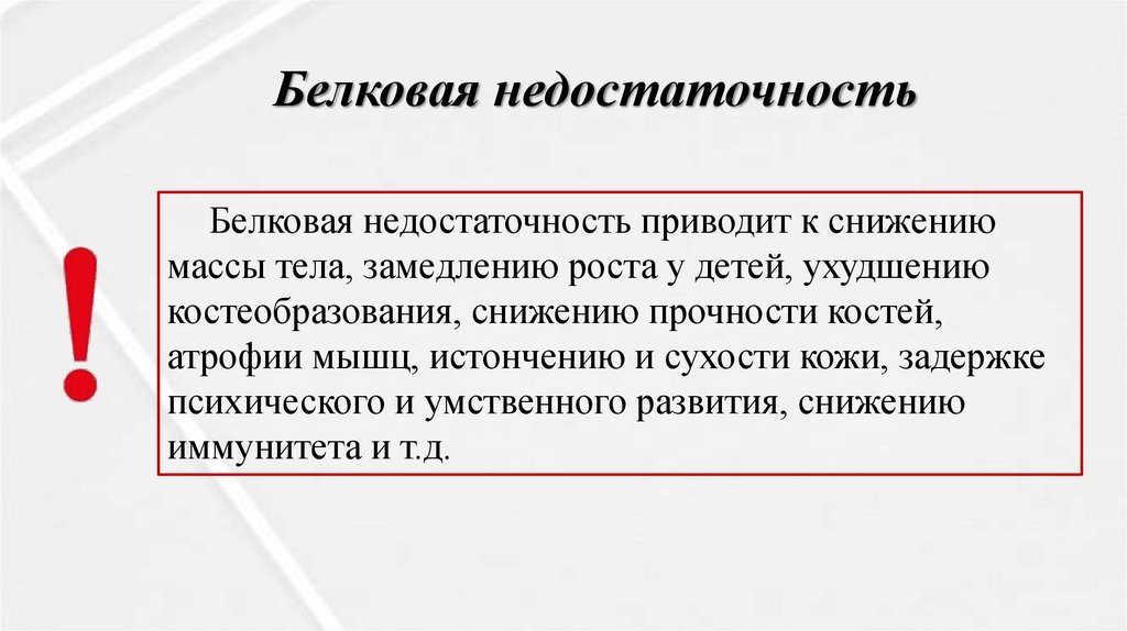 Белковая недостаточностьБелковая недостаточность приводит к снижению