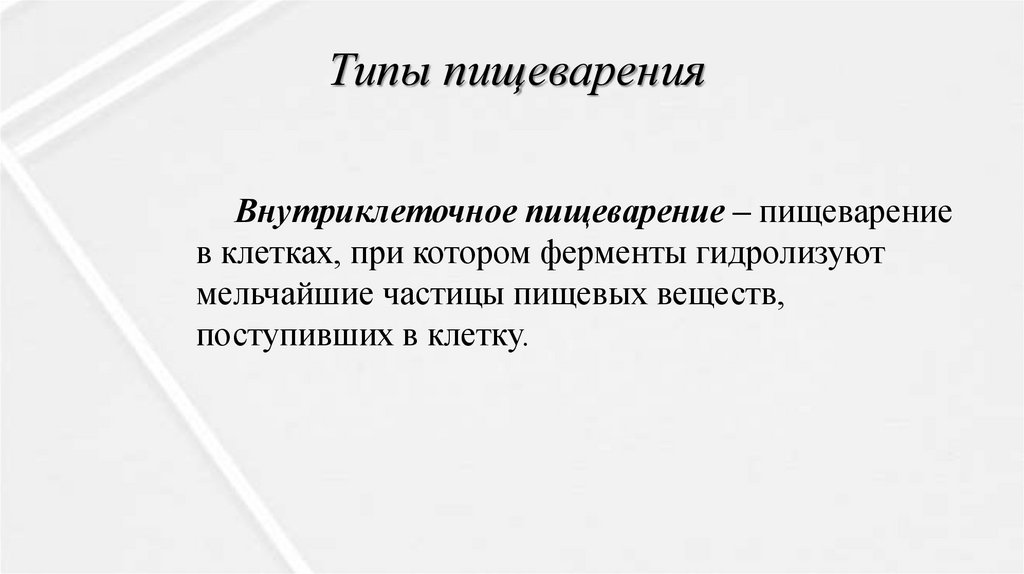 Типы пищеваренияВнутриклеточное пищеварение – пищеварение