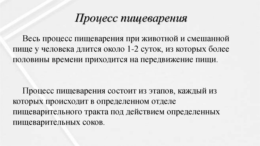 Процесс пищеваренияВесь процесс пищеварения при животной и смешанной