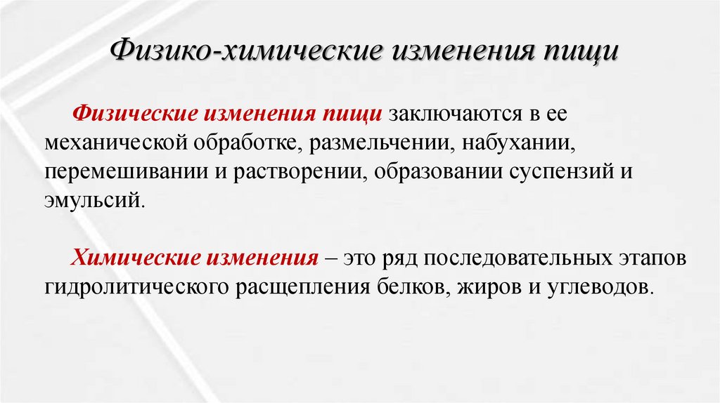 Физико-химические изменения пищиФизические изменения пищи заключаются в ее
