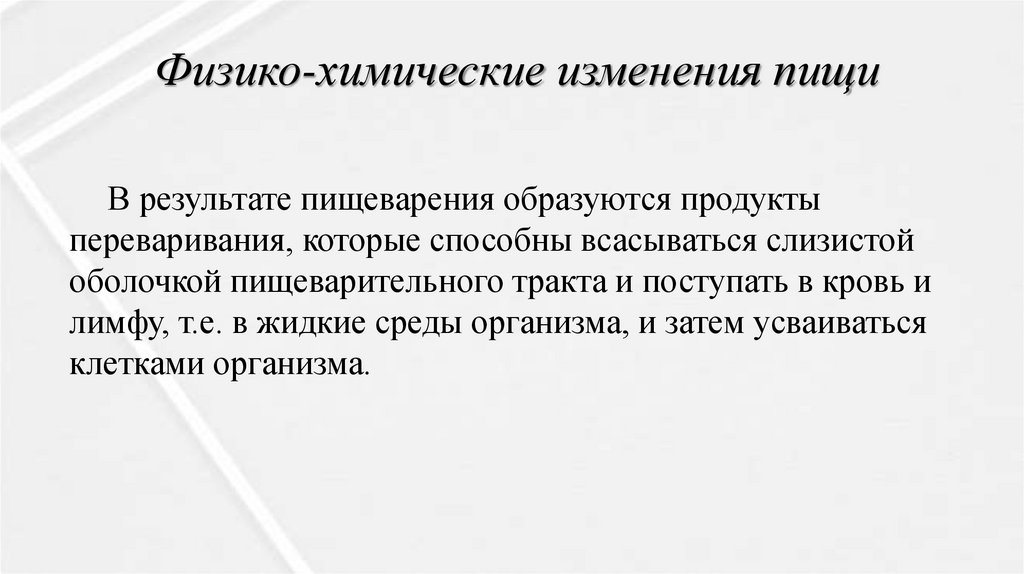Физико-химические изменения пищиВ результате пищеварения образуются продукты
