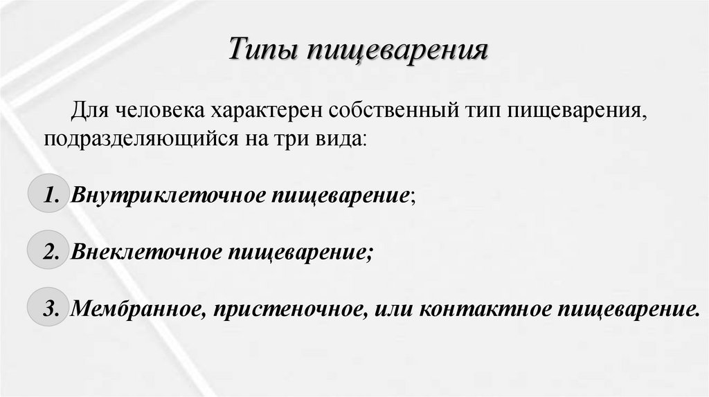 Типы пищеваренияДля человека характерен собственный тип пищеварения,