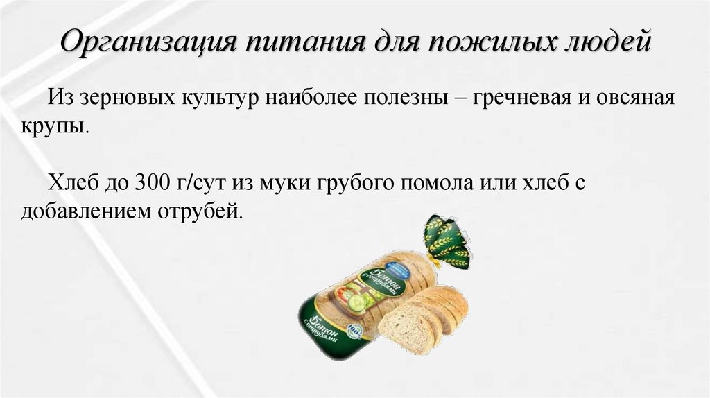 Организация питания для пожилых людейИз зерновых культур наиболее полезны – гречневая и овсяная