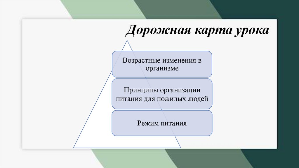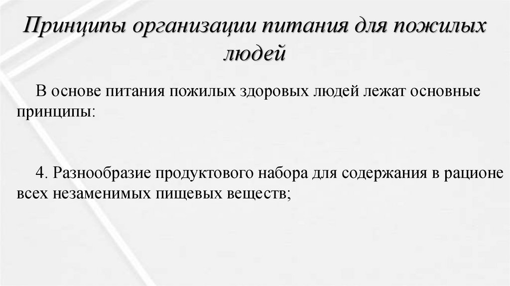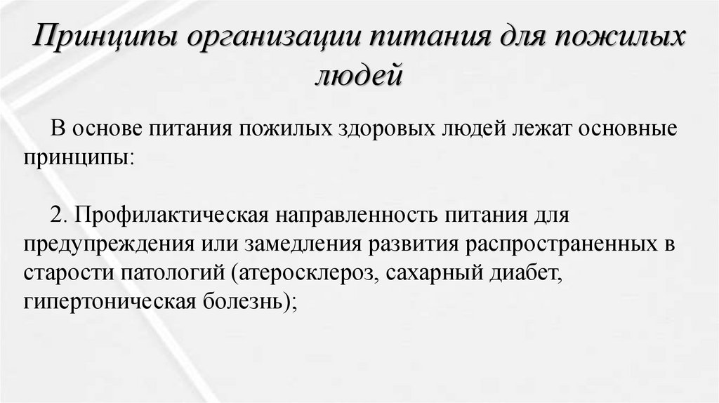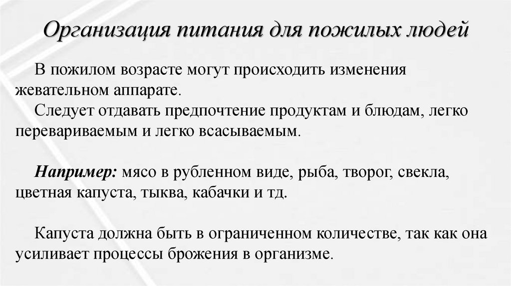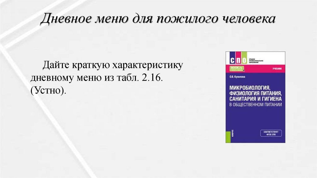 Дневное меню для пожилого человекаДайте краткую характеристику