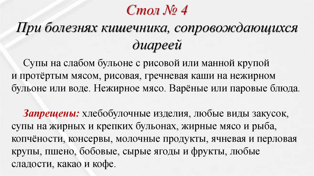 Запрещены: жирные бульоны и супы, пшено, перловка,