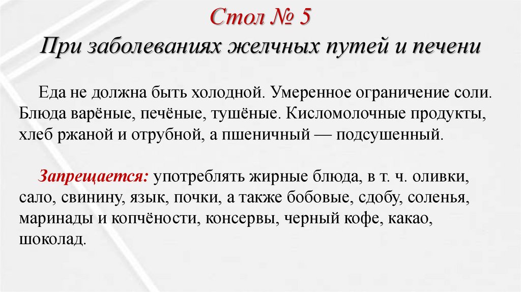 Запрещается: употреблять жирные блюда, в т. ч. оливки,