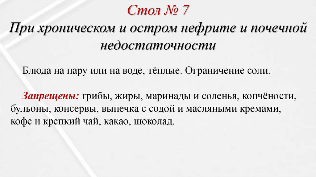 Блюда на пару или на воде, тёплые. Ограничение соли.