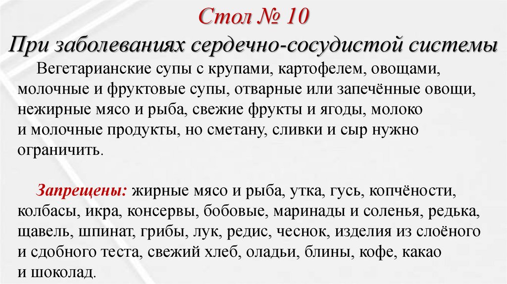 Стол № 10При заболеваниях сердечно-сосудистой системы