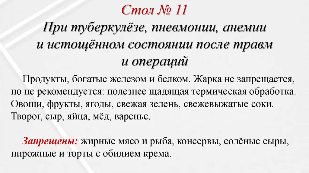 Стол № 11При туберкулёзе, пневмонии, анемии