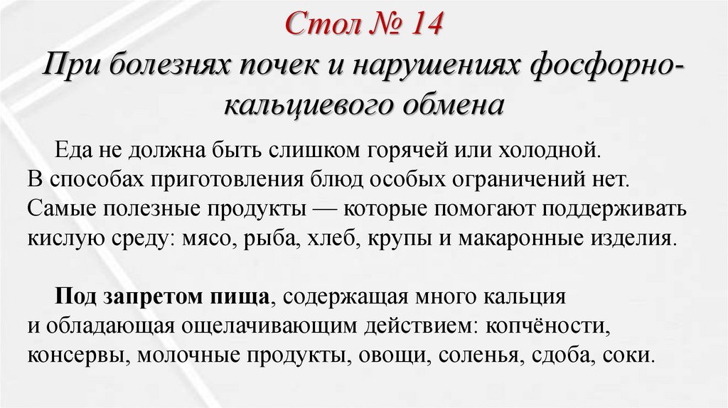 Стол № 14При болезнях почек и нарушениях фосфорнокальциевого обмена