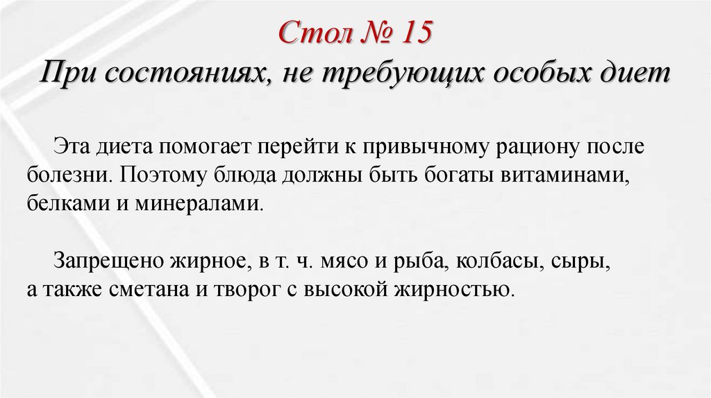Запрещено жирное, в т. ч. мясо и рыба, колбасы, сыры,