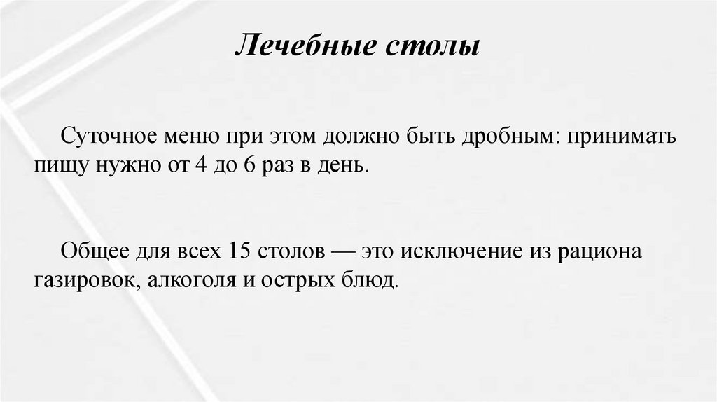 Лечебные столыСуточное меню при этом должно быть дробным: принимать