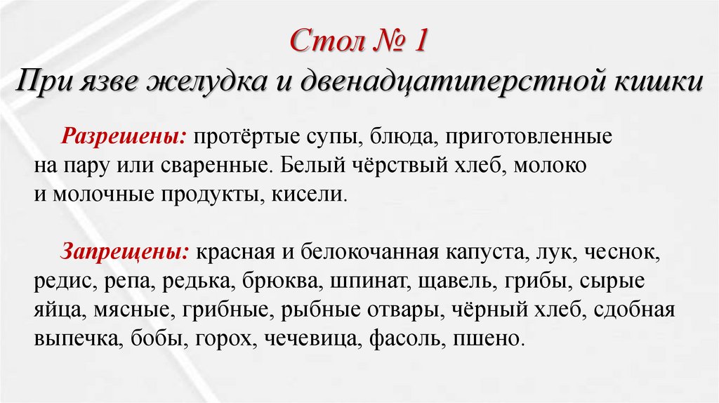 Стол № 1При язве желудка и двенадцатиперстной кишки