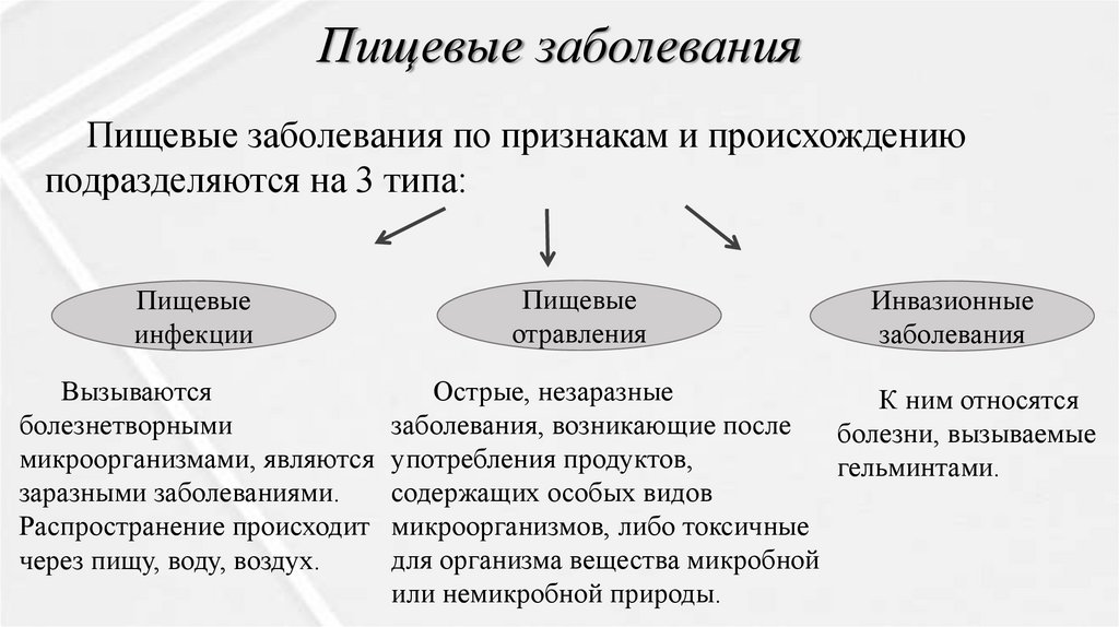 Пищевые заболеванияПищевые заболевания по признакам и происхождению