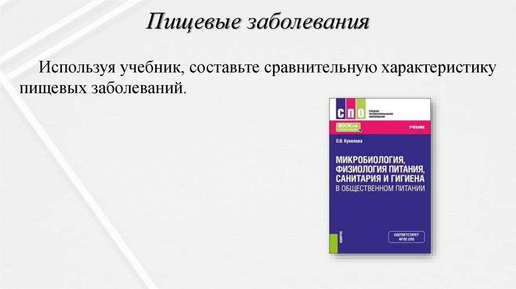Пищевые заболеванияИспользуя учебник, составьте сравнительную характеристику