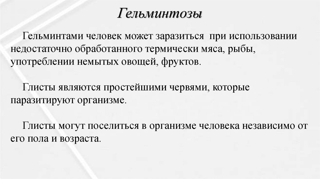 ГельминтозыГельминтозы (глистные заболевания) – это заболевания,