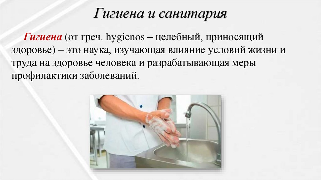 Гигиена и санитарияГигиена (от греч. hygienos – целебный, приносящий