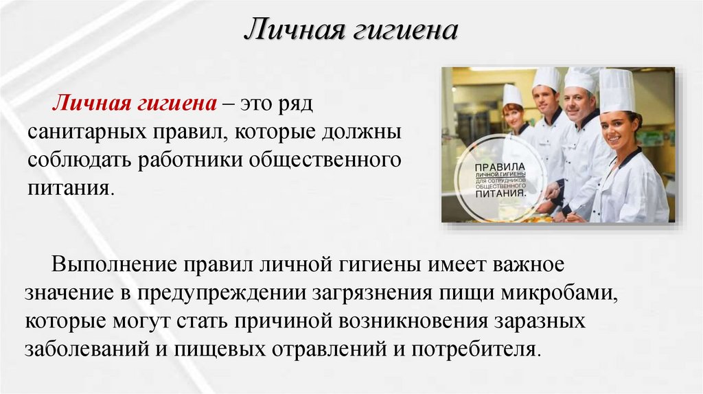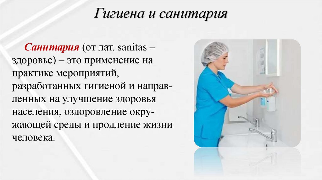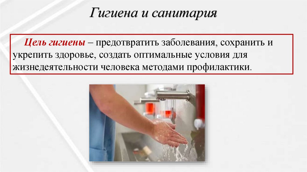 Гигиена и санитарияЦель гигиены – предотвратить заболевания, сохранить и