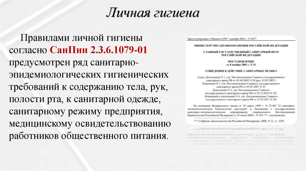 предусмотрен ряд санитарноэпидемиологических гигиенических
