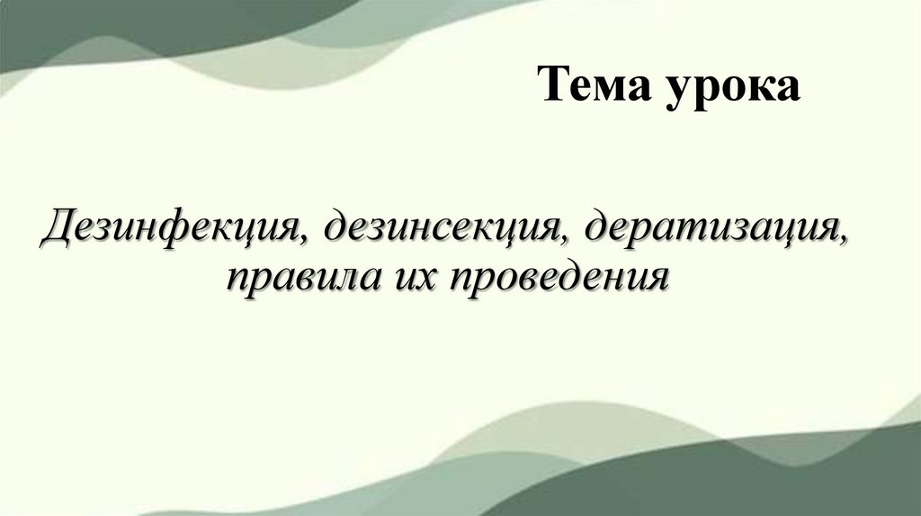 Тема урокаДезинфекция, дезинсекция, дератизация,