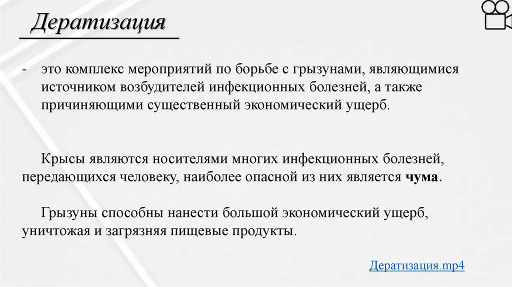 Дератизация- это комплекс мероприятий по борьбе с грызунами, являющимися