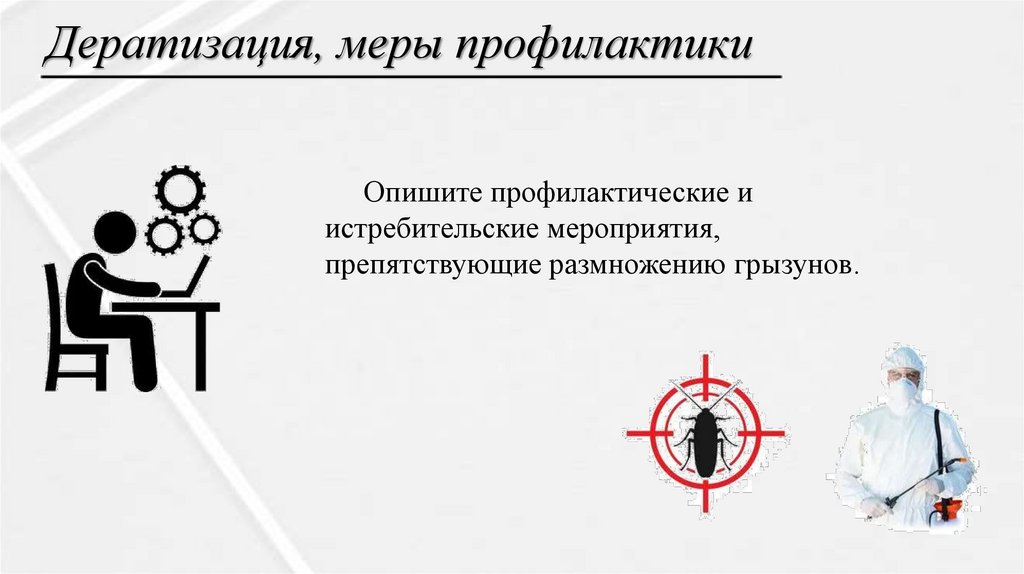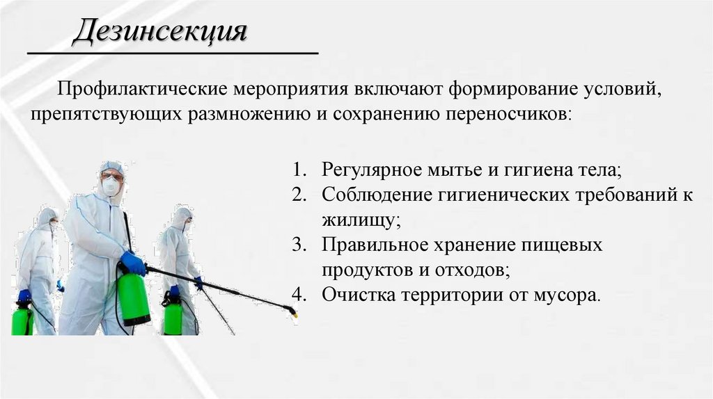 ДезинсекцияПрофилактические мероприятия включают формирование условий,