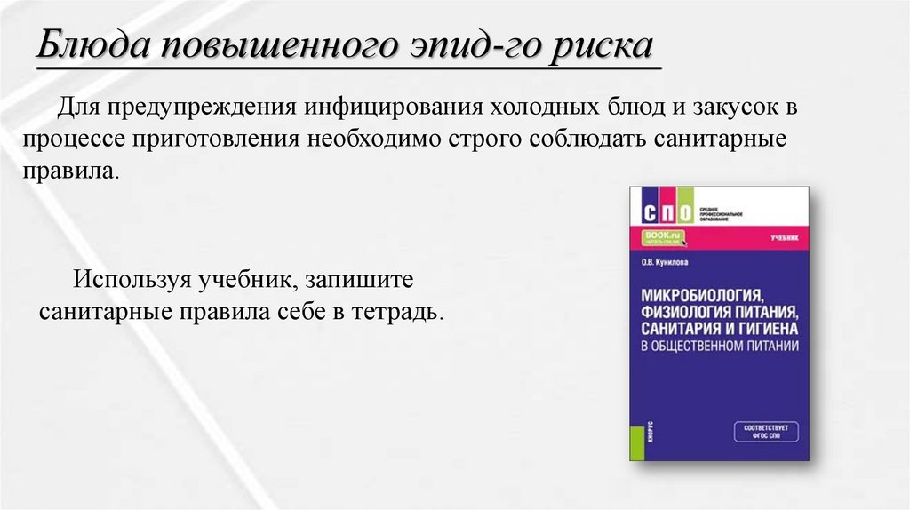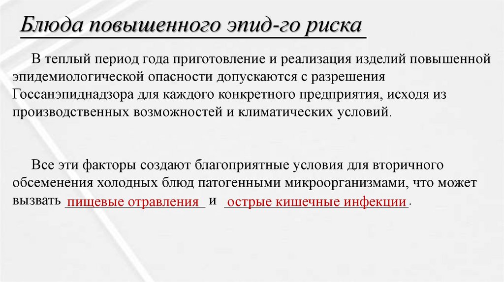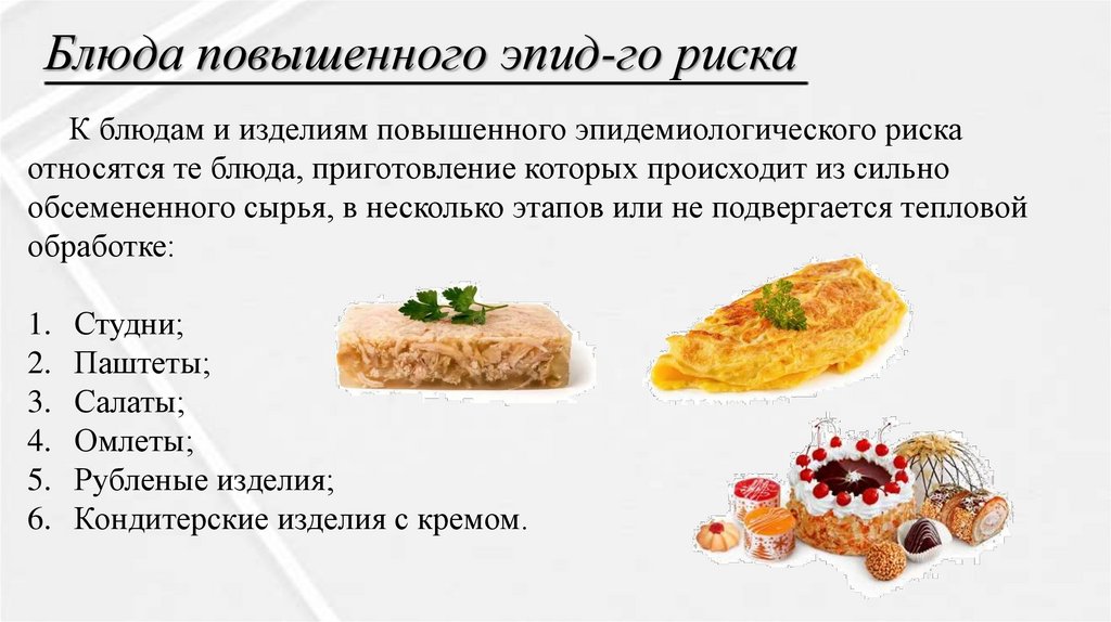 Блюда повышенного эпид-го рискаК блюдам и изделиям повышенного эпидемиологического риска