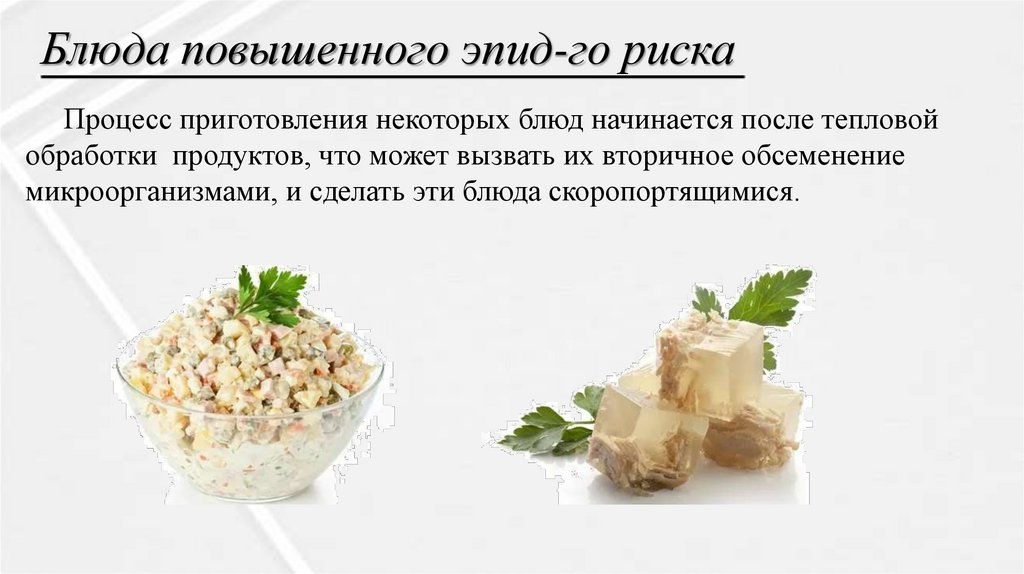 Блюда повышенного эпид-го рискаДля предупреждения инфицирования холодных блюд и закусок в